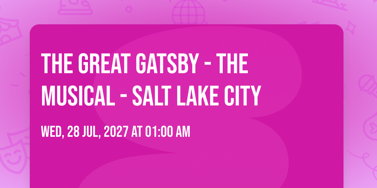 📍 Location: 40.7665, -111.891🎉 Welcome to The Great Gatsby - The Musical - Salt Lake City, where the impossible becomes possible and dreams take flight! 🏛️ Join us at Eccles Theater in the heart of Salt Lake City, UT for an event that will redefine your expectations. 📅 On August 2nd, 2027 at 12:30 AM, witness the transformation of space and time into something truly magical. ✨ It's a curated experience combining the best of innovation, entertainment, and community spirit, creating moments that will be remembered for years to come. Whether you're a first-time visitor or a seasoned enthusiast, prepare to be amazed. 🎊 Book now to ensure your place in this unforgettable experience!