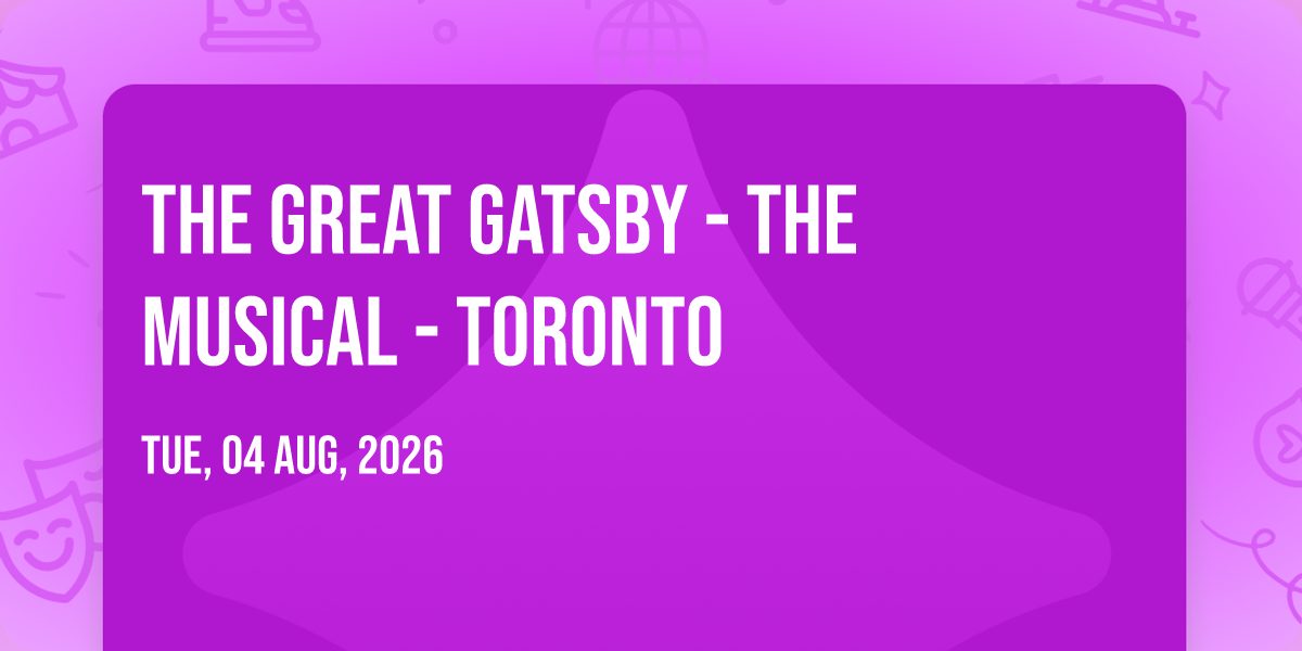 📍 Location: 43.6553, -79.3794🌟 Step into a world of wonder at The Great Gatsby - The Musical - Toronto, where extraordinary moments await! 🏛️ Located at Ed Mirvish Theatre in dynamic Toronto, ON, this event will become the talk of the town. 📅 Join us on September 6th, 2026 at 06:00 PM for a celebration that defies the ordinary. ✨ This curated experience brings together the best of entertainment, culture, and community spirit. Every detail has been thoughtfully planned to ensure an unforgettable experience for all our guests. 🎯 Take advantage of this opportunity to be part of something special. 🎊 Early registration is recommended as space is limited!