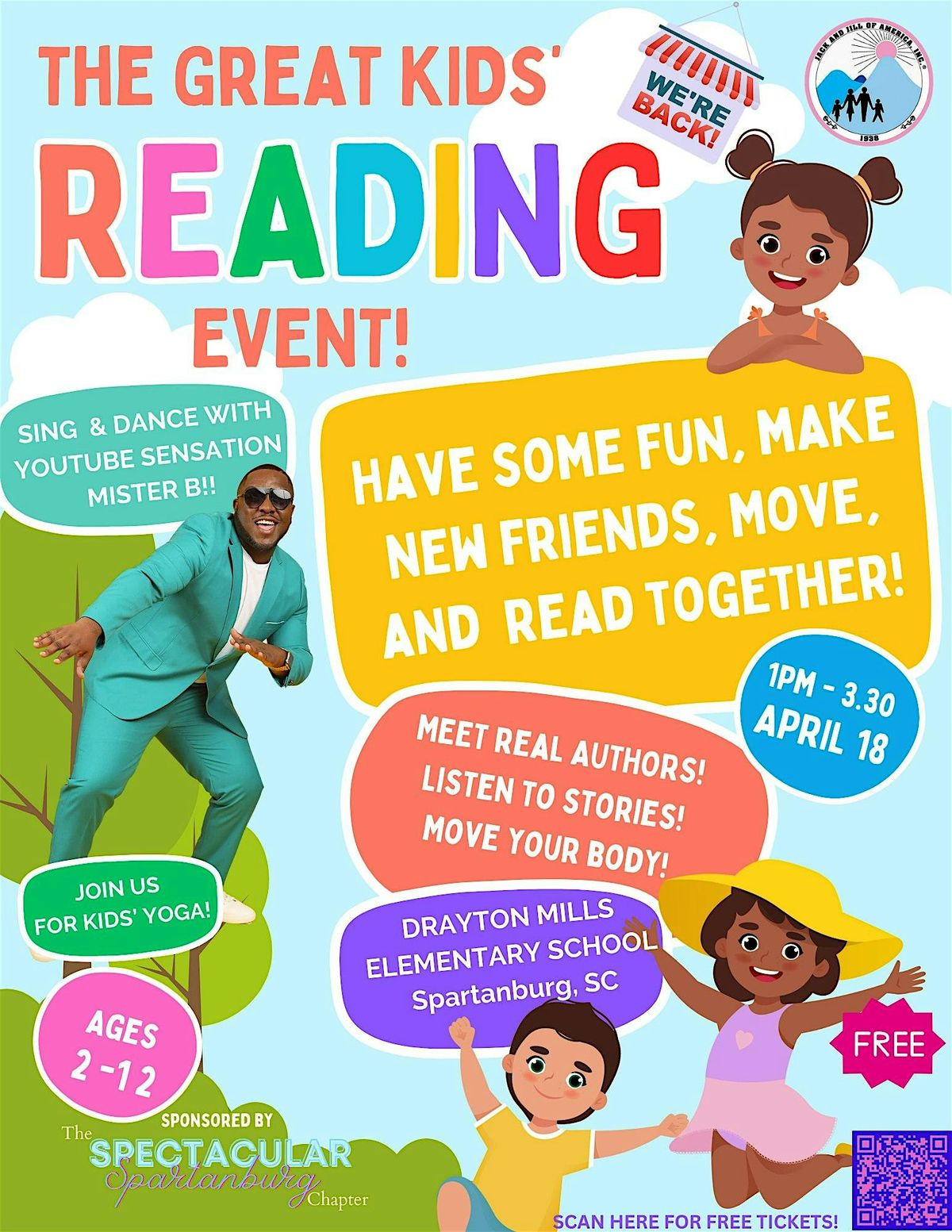 This event is sponsored by the Spectacular Spartanburg Chapter of Jack & Jill of America. Let's get kids excited about reading and moving!About this Event