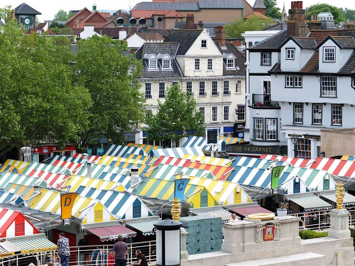 Meet on the steps of City Hall. A 1½ hour guided tour in and around Norwich Market, celebrating 950 years of buying and selling at the heart of the city. The tour includes a cup of tea at Birchley's Loose Leaf Tea.