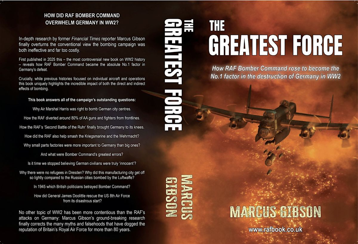 A new book on RAF Bomber Command overturns the accepted, conventional view about RAF Bomber Command – that it was ‘ineffective and too costly’. It's titled: 'The Greatest Force'. This is the first book to probe deeply into the effects of the bombing campaign, and not only the direct damage but also the multitude of indirect effects that crippled both German military and industry.Overall, it proves Air Marshal Harris was right to bomb city centres and, above all, it was he who inflicted more damage on Germany than any other Allied commander including the Soviets.