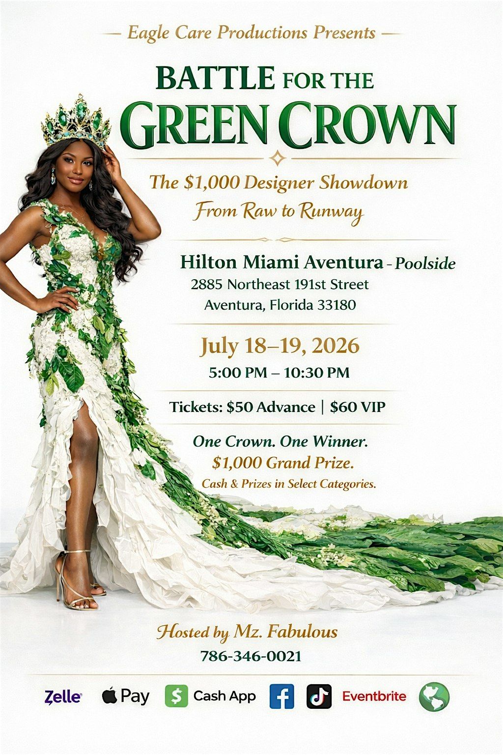 GET READY FOR THE GREEN CROWN “ From Raw to Runway Competition. ECO Sustainable fashions. Love of the earth 1,000 grand prize plus prizes