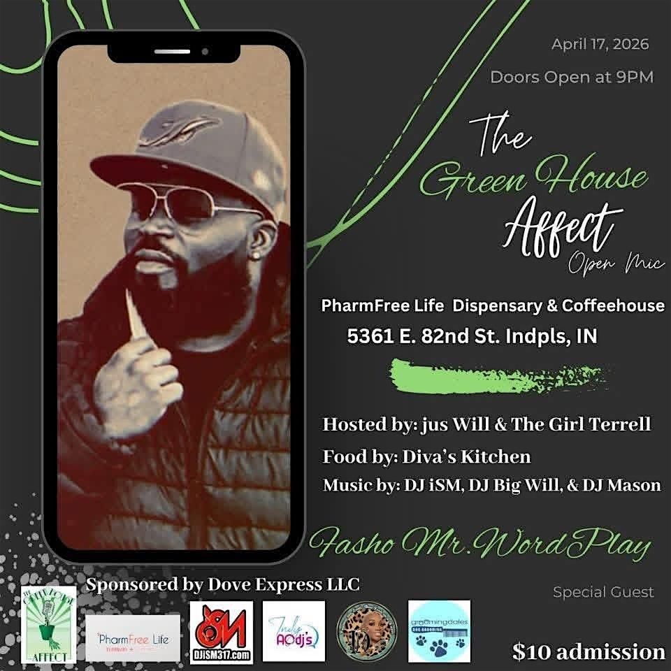 Join us Friday, April 17th at 9PM, inside PharmFree Life Dispensary + Coffeehouse (@pharmfreelife_dispensary), located at 5361 E. 82nd St. Indianapolis, IN 46250 with our special guest, Fasho Mr. Wordplay (@fashocreationz)! Grab all your friends and if you wish to share your talents prepare to hit the open mic; $10 admission! Tickets may be purchased online or at the door during event.