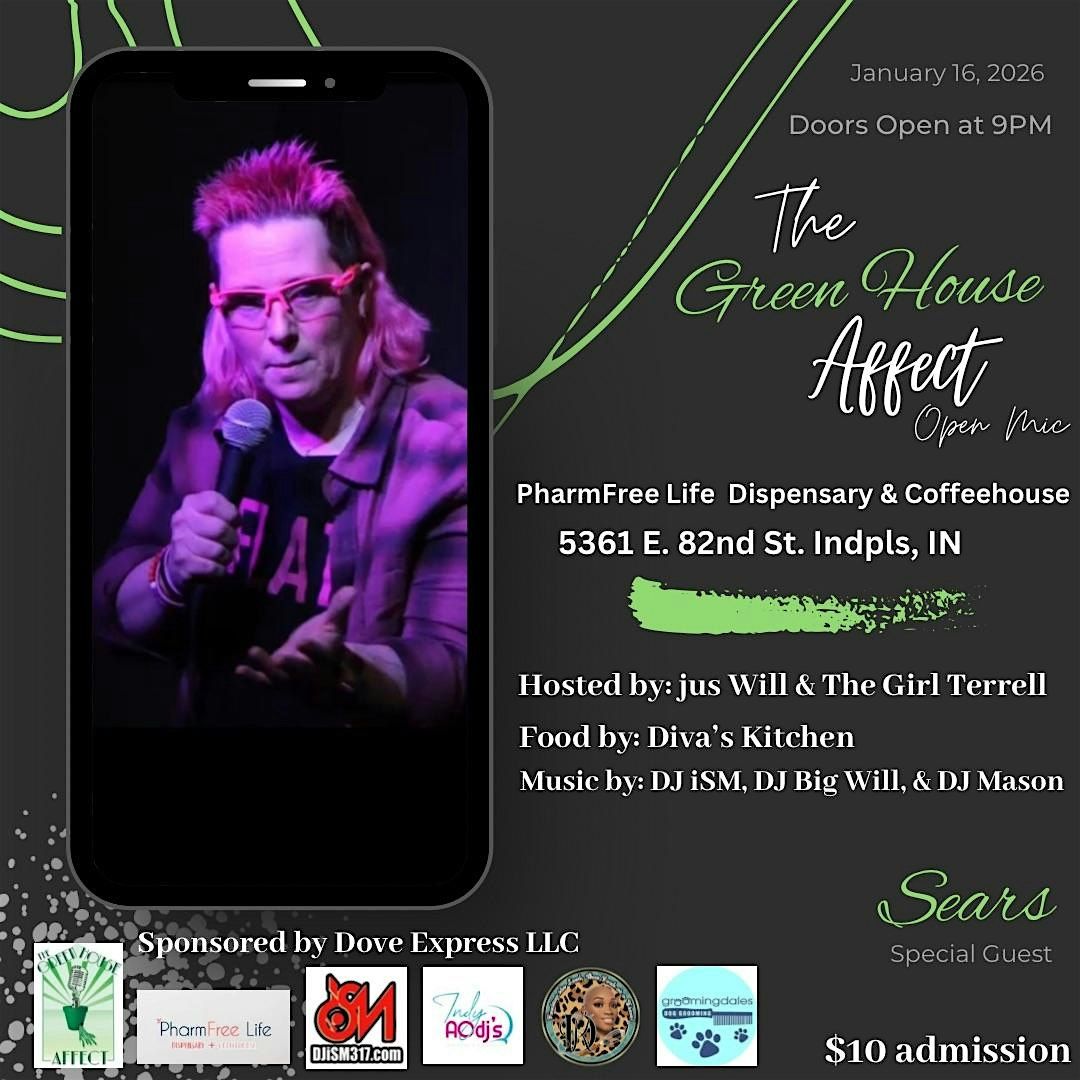Join us Friday, January 16th at 9PM, inside PharmFree Life Dispensary + Coffeehouse (@pharmfreelife_dispensary), located at 5361 E. 82nd St. Indianapolis, IN 46250 with our special guest, comedian Sears (@_sears__)! Grab all your friends and if you wish to share your talents prepare to hit the open mic; $10 admission! Tickets may be purchased online or at the door during event.