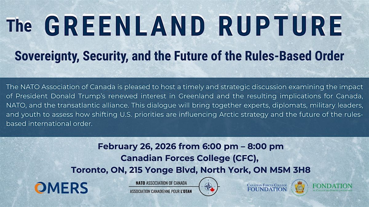 The NATO Association of Canada is pleased to host a timely and strategic discussion examining the impact of President Donald Trump’s renewed interest in Greenland and the resulting implications for Canada, NATO, and the transatlantic alliance. This dialogue will bring together experts, diplomats, military leaders, and youth to assess how shifting U.S. priorities are influencing Arctic strategy and the future of the rules-based international order.