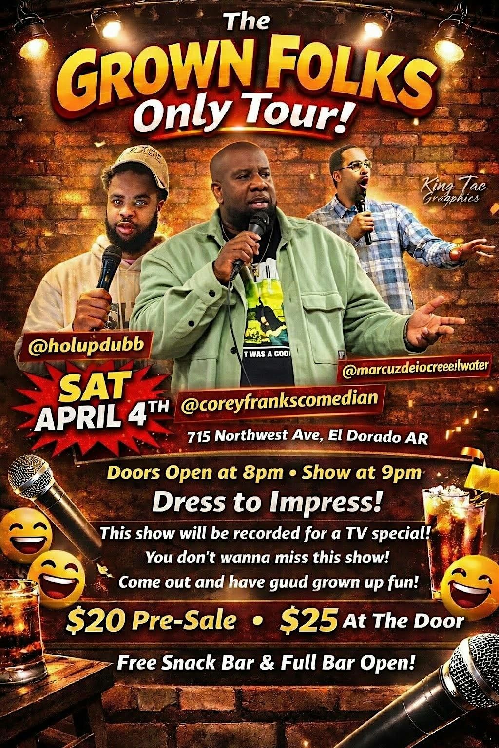 April 4, 2026 come join us on the first stop of the grown folks only tour @ Guud Vibez Social Club Eldarado Ar. Be apart of Live Taping