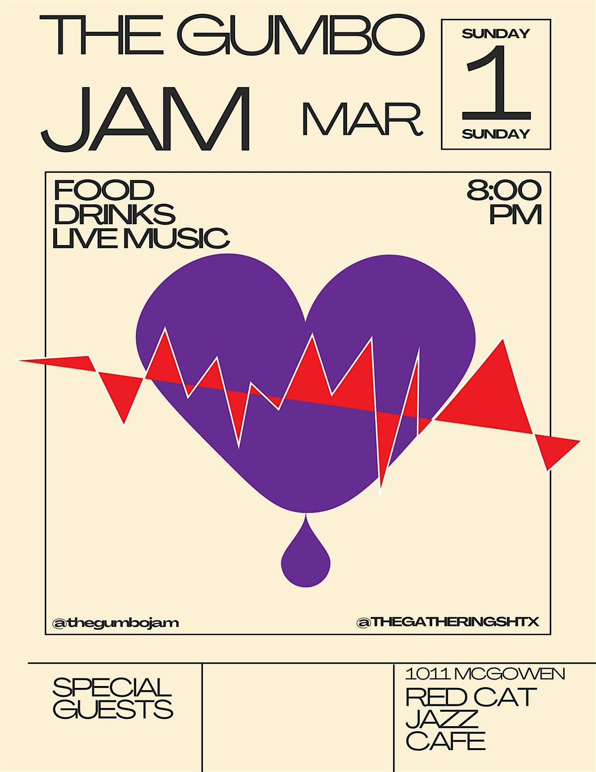 The Gumbo Jam isa high-energy, Louisiana-inspired live music jam session and open mic in Houston blending funk, jazz, hip-hop, and R&B, hosted by trombonist Matthew Hartnett. Known for its freestyle vibe, community focus, and faith-based undertones, it features local artists, poets, and musicians every first Sunday.