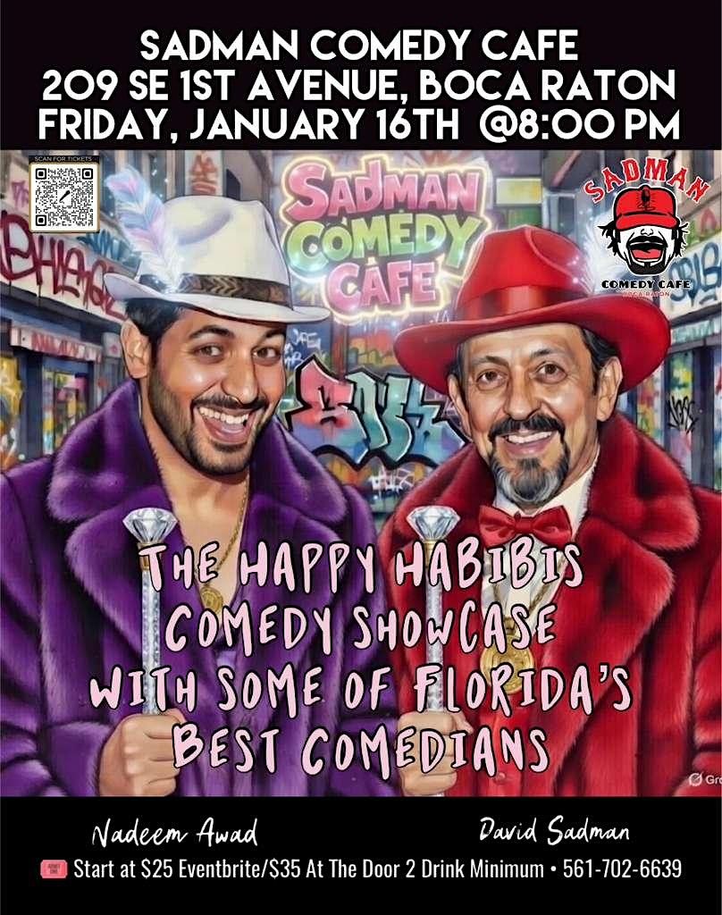 🔥 The lineup? Packed with surprises.😂 The Stars The one and only David Sadman, Nadeem Awad and Their Incrdible Comedian Friends From Around The Florida! You Never know who will drop in at Sadman Comedy Cafe!