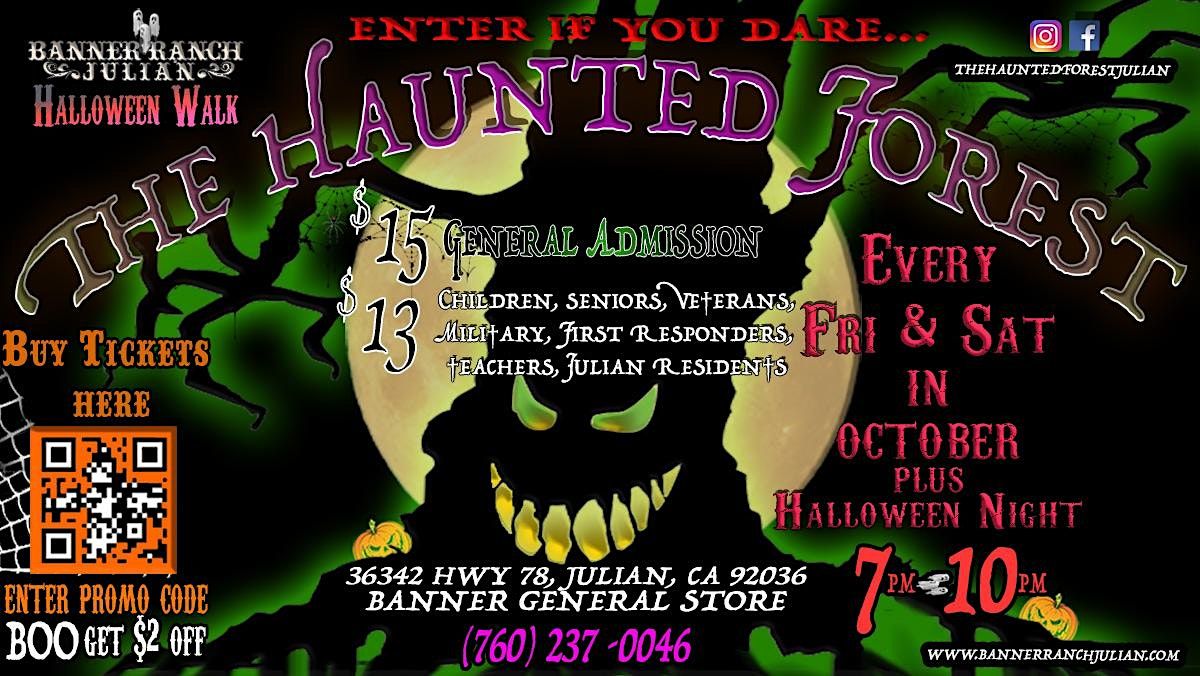 Get into the Halloween Spooky Spirit at Ghost Town Banner City's The Haunted Forest in beautiful Julian! Back for our second year, bigger and spookier than before!