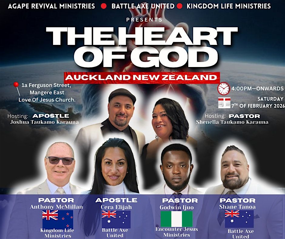 We want to invite you all to an upcoming revival meeting we are hosting here in Auckland, New Zealand . Come expectant.