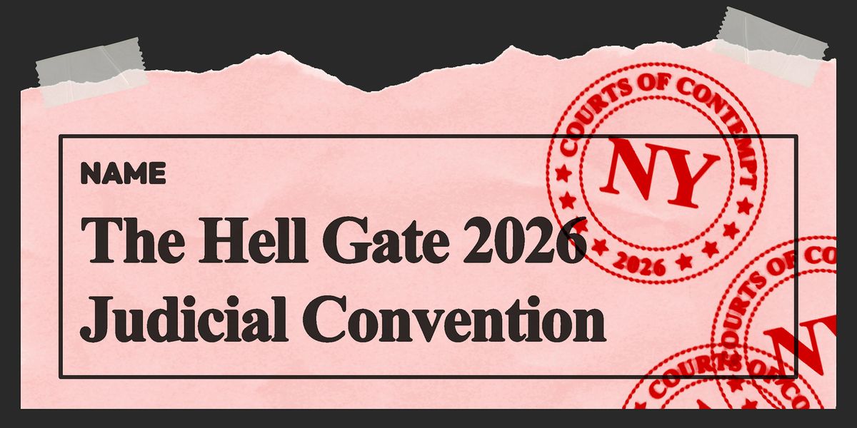 To celebrate its release, we're holding The Hell Gate Judicial Convention—a night of inspired debate, politicking, and light graft on May 6 at the lovely Littlefield in Gowanus.