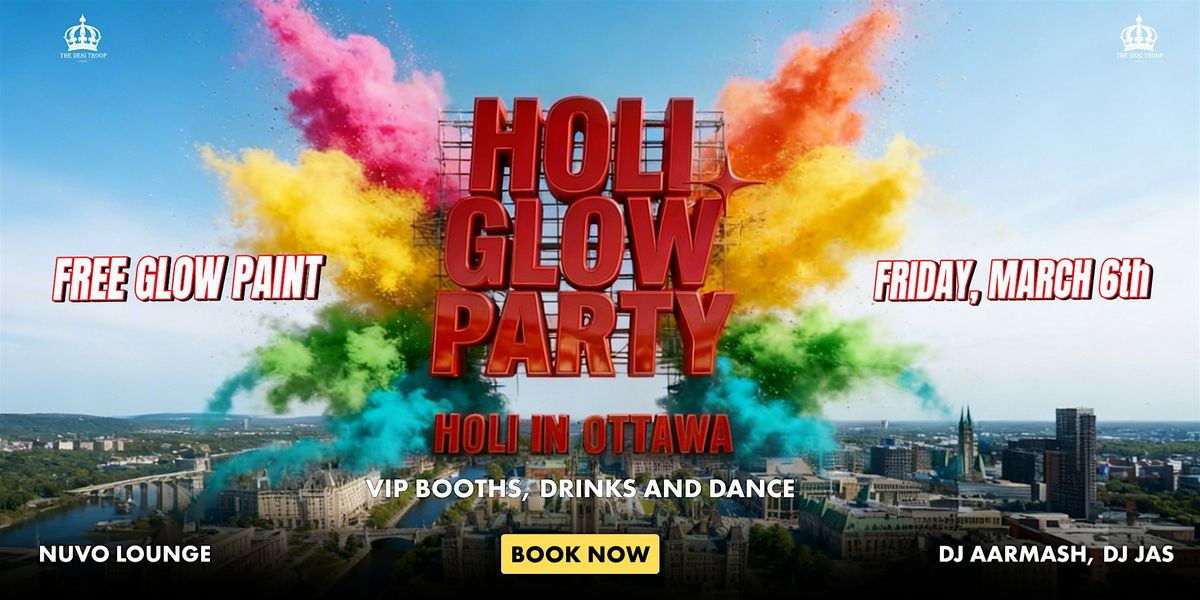 Join us for The Holi Glow Party, Ottawa’s signature neon Holi celebration — now in its third year of sell-outs. Expect a packed dancefloor, a premium nightlife atmosphere, and free glow paint included with your ticket so you can celebrate Holi in full color — after dark.