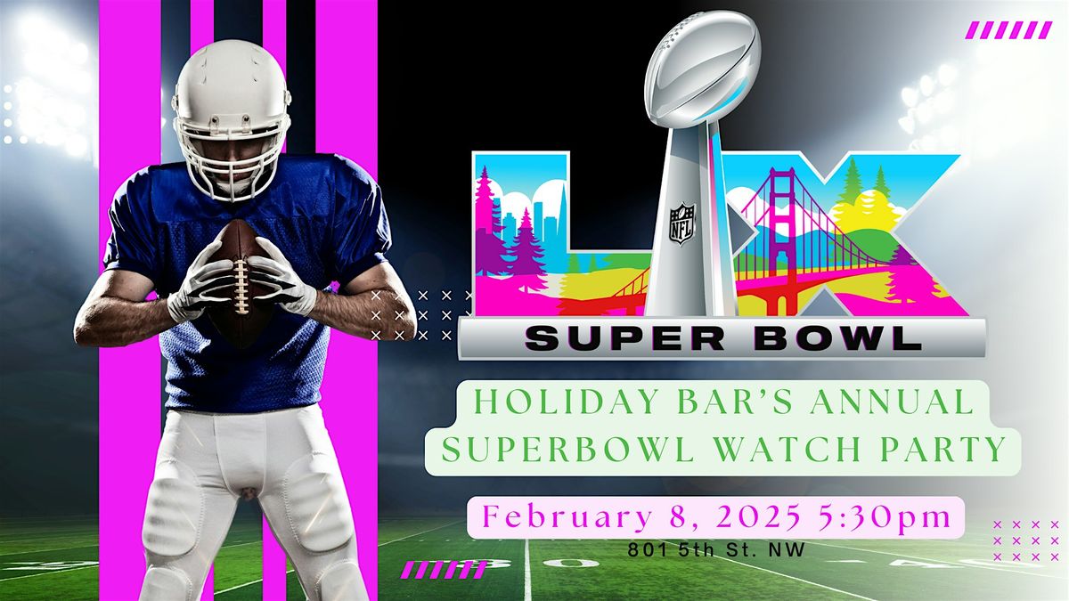 Welcome to The Holiday Bar's Annual Superbowl Party! Get ready for a night of fun, food, and football! Join us on Sun Feb 08 2026 at 5:30 PM at 801 5th St NW for the ultimate Superbowl experience. Cheer on your favorite team, enjoy delicious drinks, our famous SuperBowl Buffet, and mingle with fellow football fans. Don't miss out on the excitement – mark your calendars now!