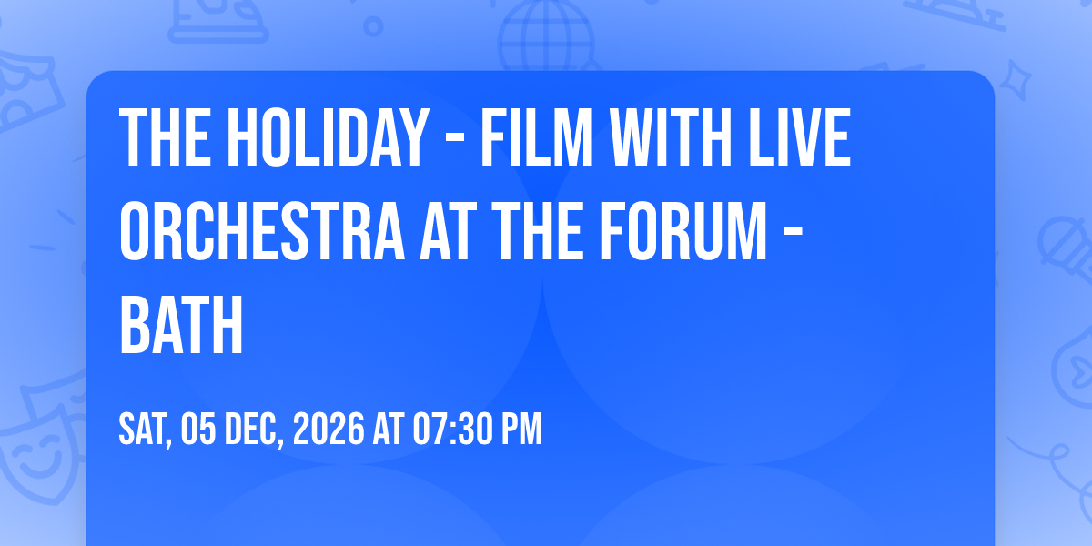π Be part of history at The Holiday - Film with Live Orchestra at The Forum - Bath, an extraordinary gathering that will captivate your imagination! ποΈ The prestigious The Forum - Bath in Bath, EN sets the stage for an unforgettable experience on December 5th, 2026 at 07:30 PM. β¨ They are bringing together the finest elements of entertainment and innovation to create moments that will take your breath away. From the moment you arrive, you'll be immersed in an atmosphere of wonder and excitement. π― This carefully planned event ensures every guest experiences something truly special. π Early booking is recommended for this must-attend event of the season!