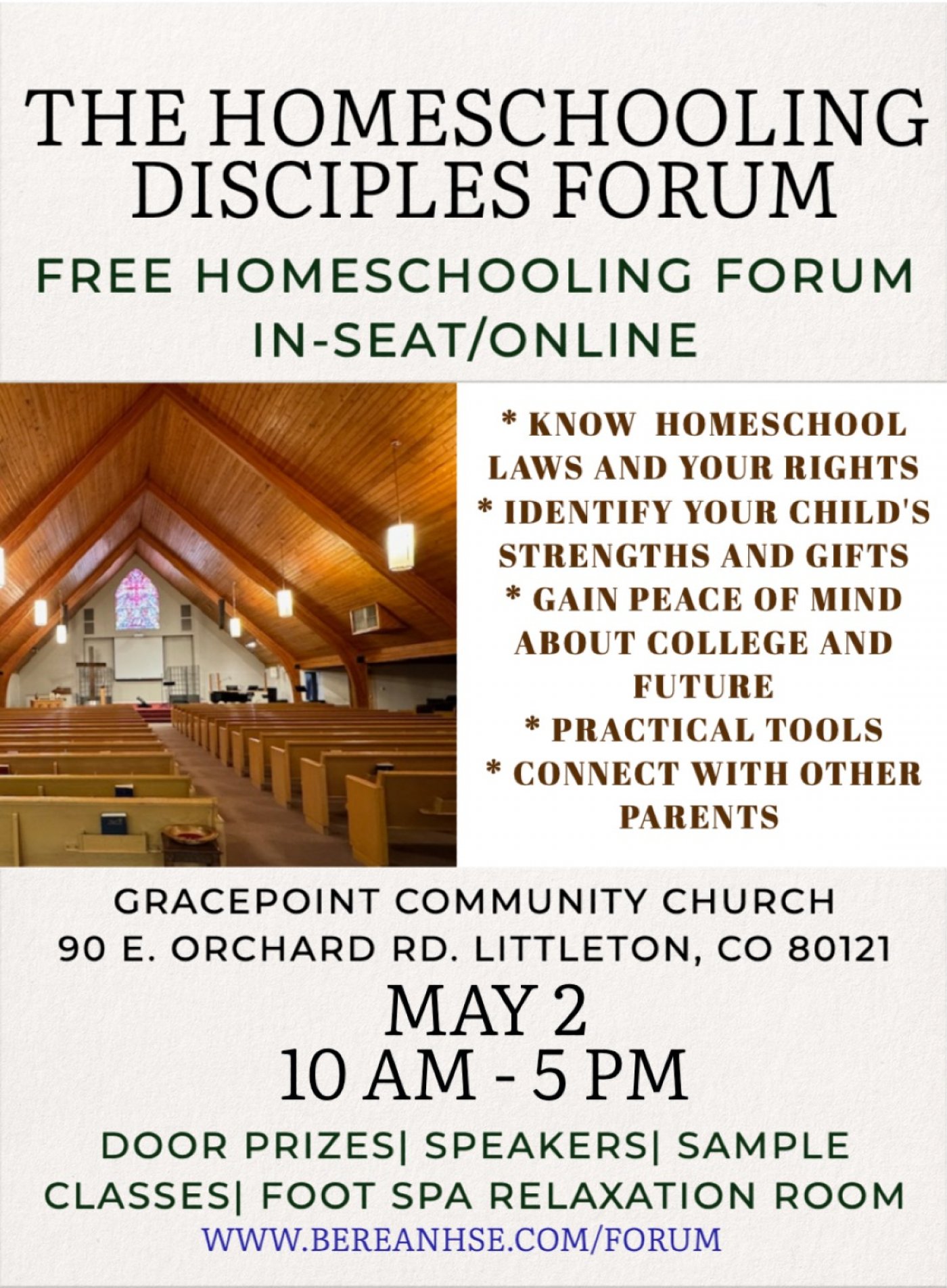 Location: GracePoint Community Church, 90 E. Orchard Rd. Littleton CO 80121.