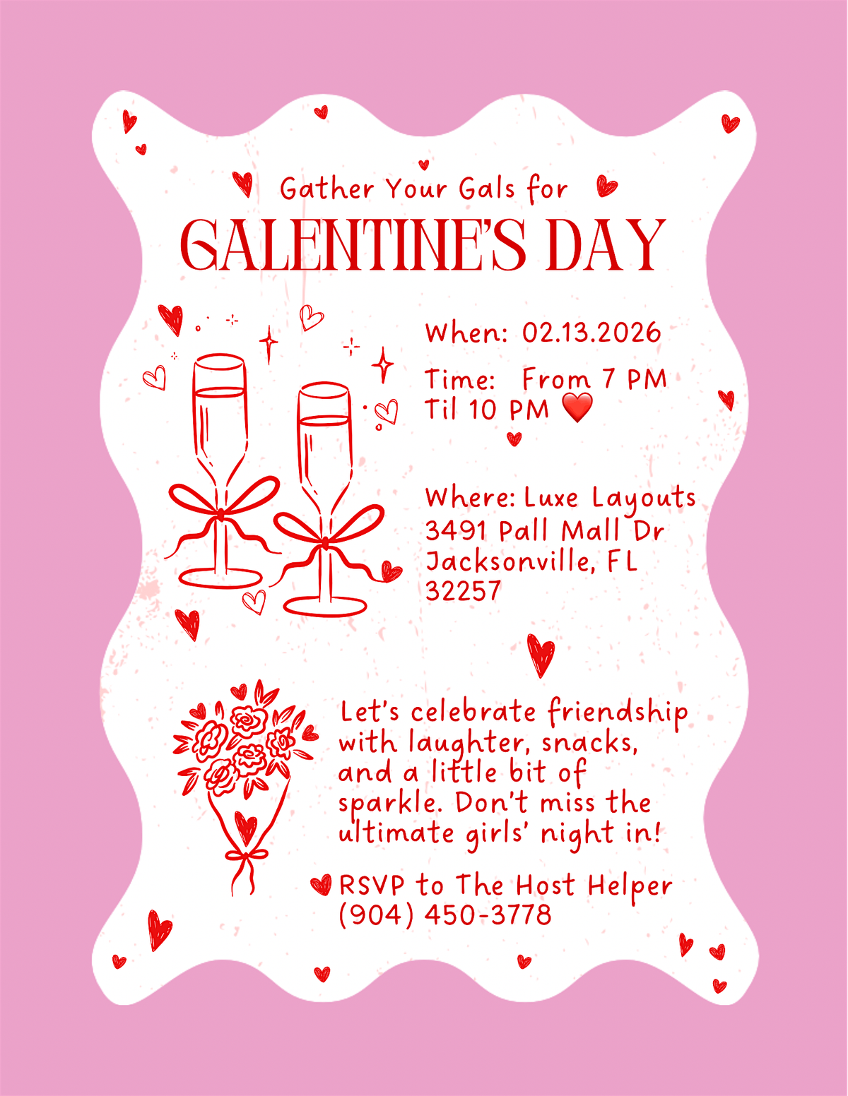 Let's celebrate friendship with laughter, snacks, and a little bit of sparkle. Don't miss the ultimate girls' night in!