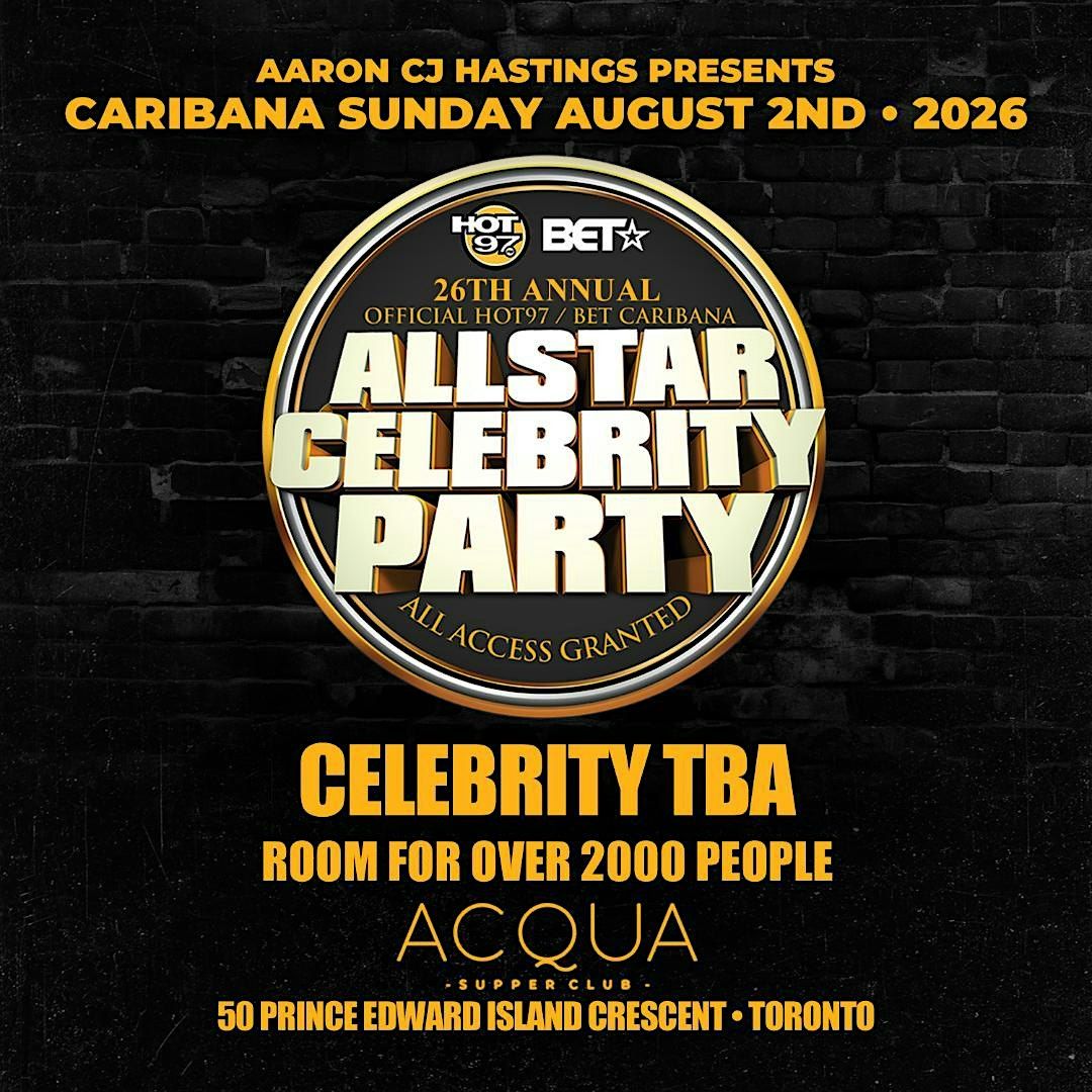 Caribana Sunday Hot 97 / Bet All Star Party is being held at Toronto's ACQUA Entertianment Complex with room for over 2000 People Downtowon Toronto. Last year OVO's own Roy Woods X Smiley Plus Dancehall Star Kraff were in Attendance