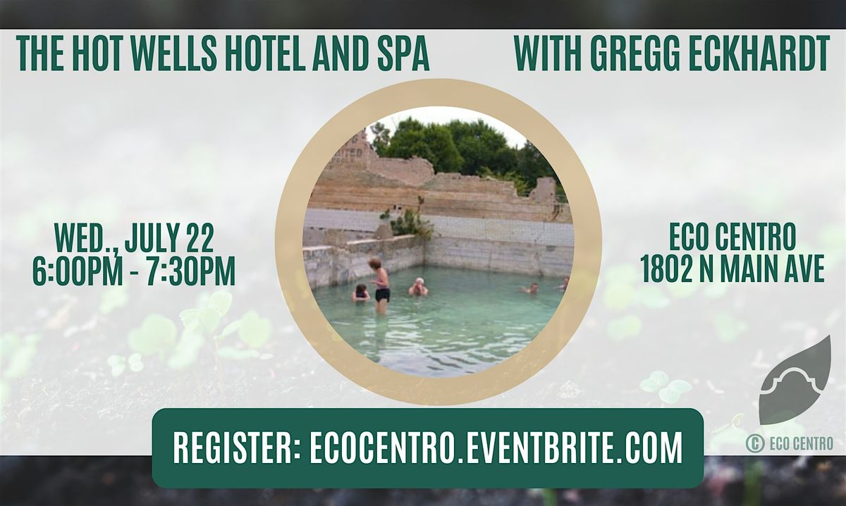 Come join us for a delightful presentation by Gregg Eckhardt of San Antonio Water Systems, who will take you on an engaging exploration of the Hot Wells Hotel and Spa.