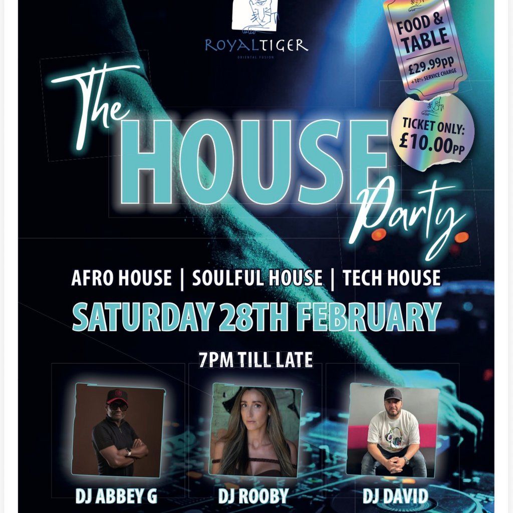 Come and Join us on Saturday 28th February for a night of food, drink and House Music. We have three different house Djs playing their own sets