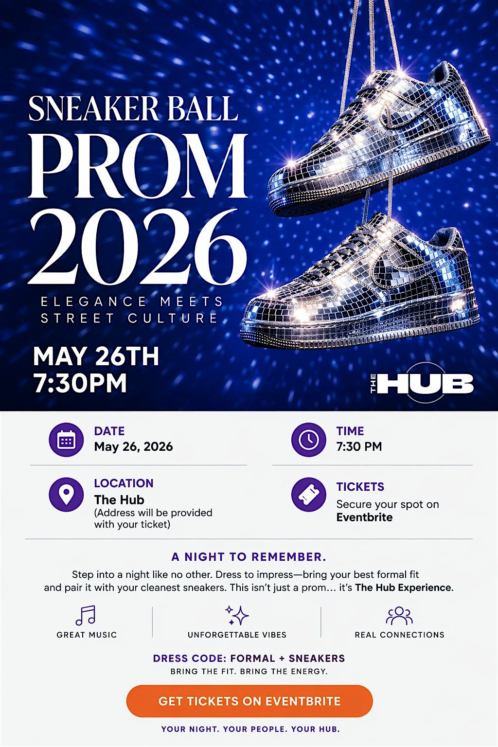 We heard it's prom season... soo, Sneaker Ball Prom at The Hub is your chance to dress up, wear your sneakers, and maybe even bring a date.