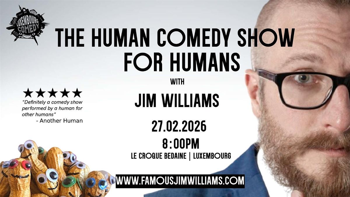 A human comedy show for humans! Jim Williams brings absurd, witty stand-up about life, love & everything weird to Luxembourg.