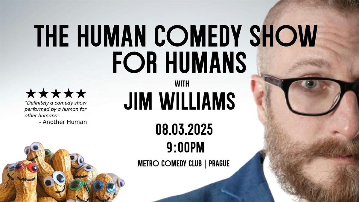 A human comedy show for humans! Jim Williams brings absurd, witty stand-up about life, love & everything weird to Prague.
