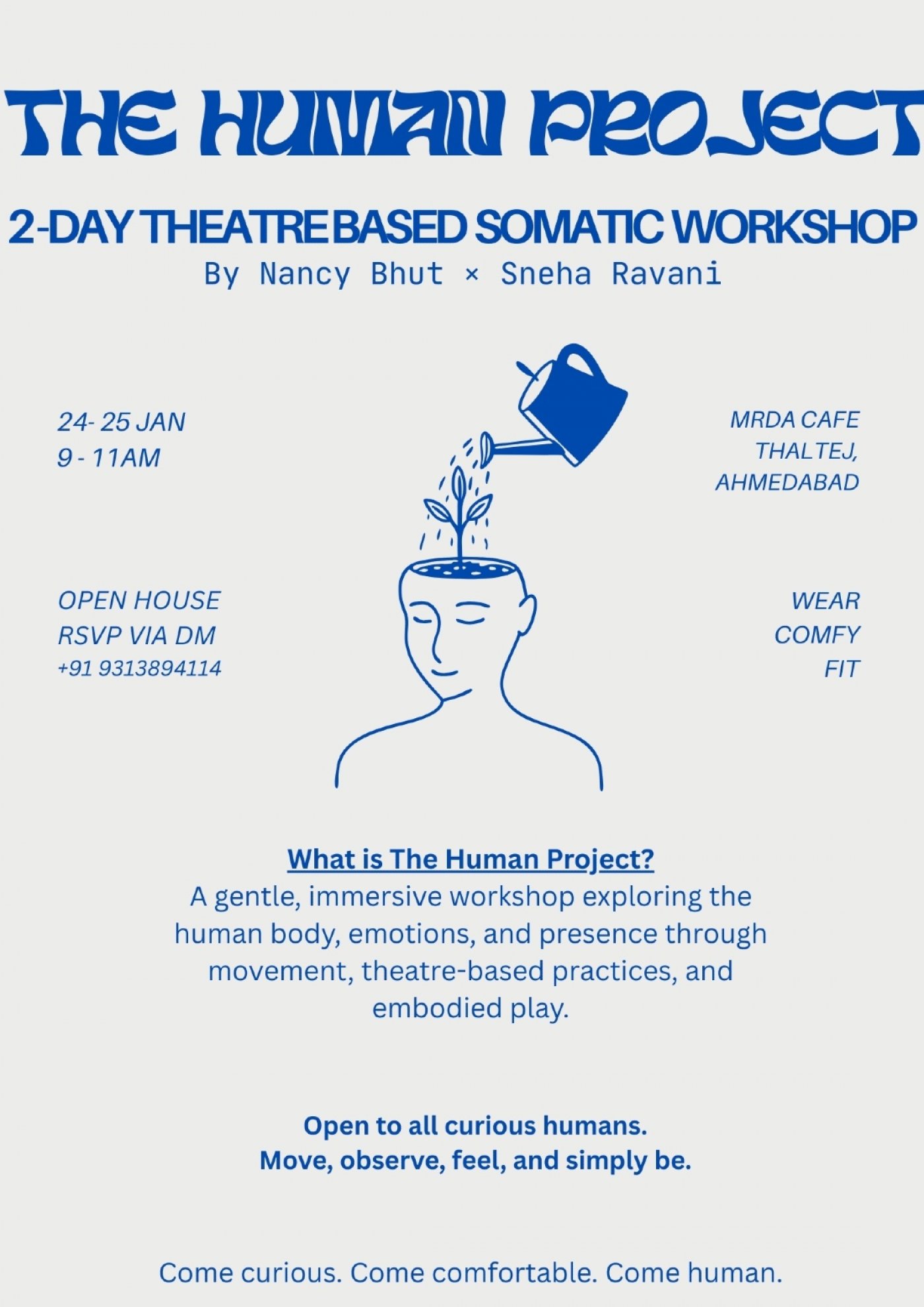 The Human Project is a gentle, theatre-based somatic experience that invites you to slow down and reconnect with your body, emotions, and inner voice. Through simple movement, breath, awareness exercises, and playful theatre practices, participants explore human behavior, emotions, and relationships. We work with a light script or scene, not to perform perfectly, but to understand ourselves and others—without pressure, judgment, or prior experience.