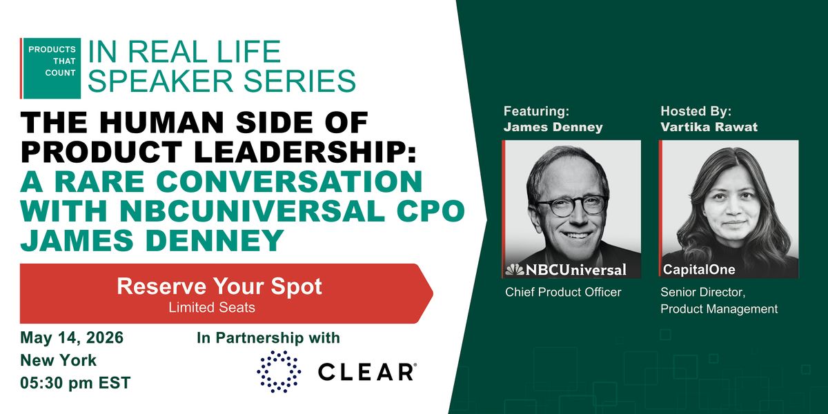 This isn't a keynote. It's a fireside conversation, hosted by Vartika Rawat, Senior Director of Product Management at Capital One. With 15+ years leading product across Capital One and Mastercard, Vartika knows what it takes to build at scale inside large, complex organizations: exactly the right person to draw out what makes Jim's approach distinct.