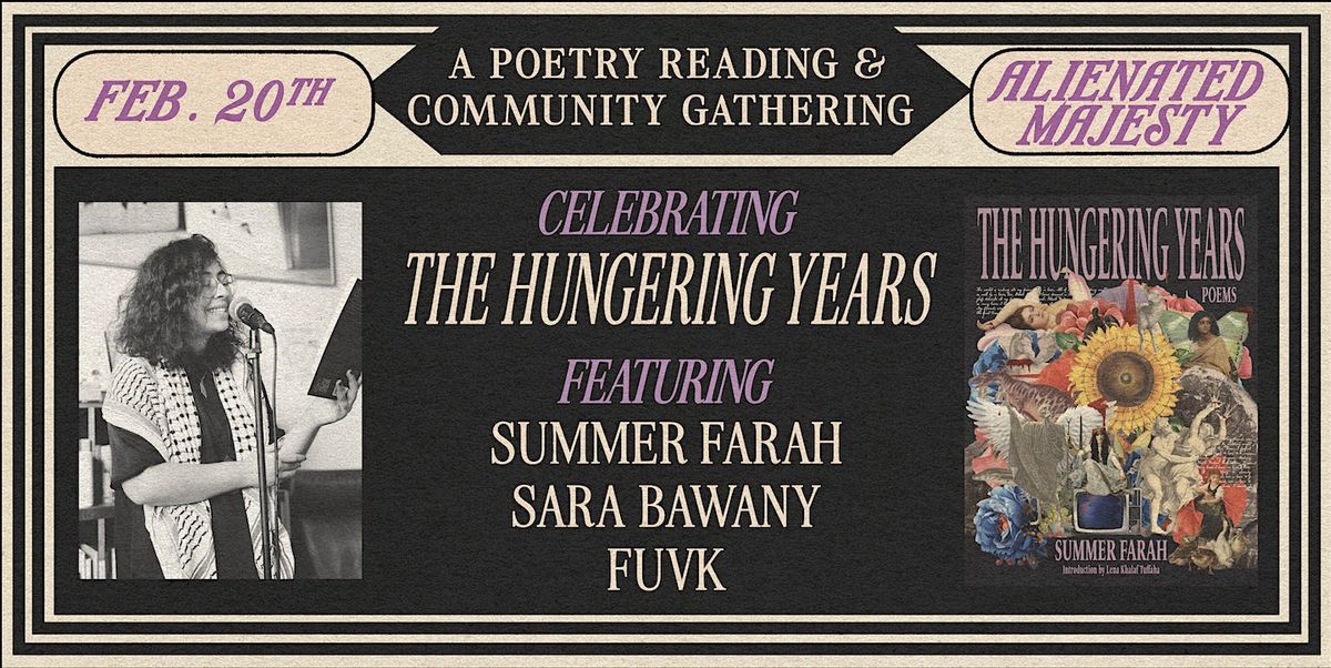 Info: Summer Farah is a Palestinian American writer, editor, and zine-maker from California. She is the author of I could die today and live again (Game Over Books, 2024) and The Hungering Years (Host Publications, 2026). A member of the Radius of Arab American Writers and the National Book Critics Circle, she is calling on you to recommit yourself to the liberation of the Palestinian people each day.