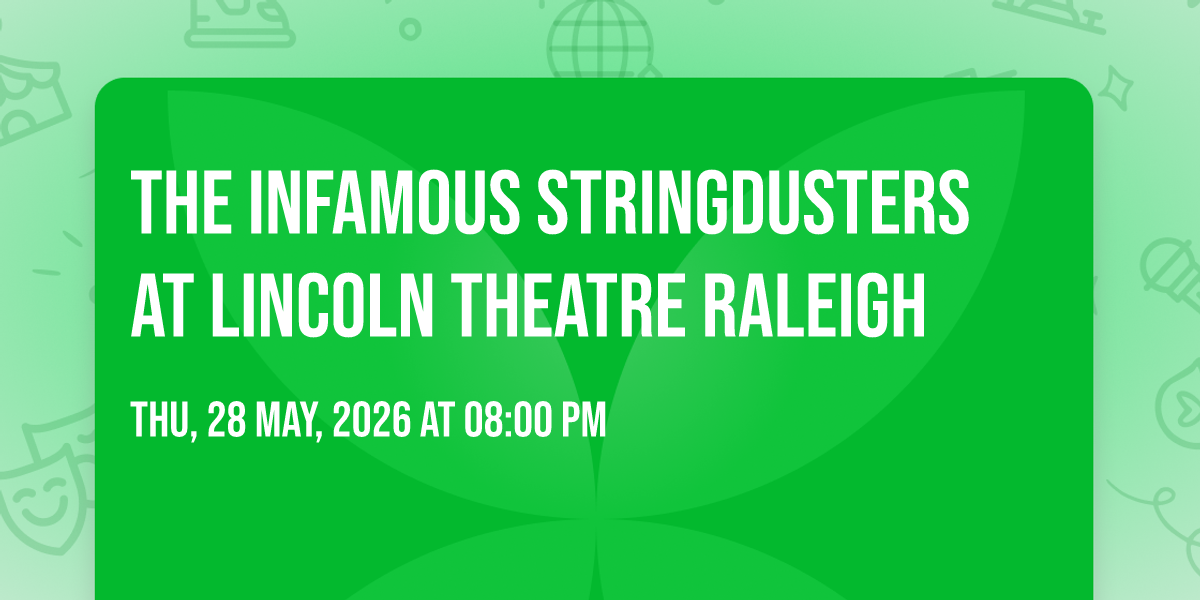 โจ Experience the magic of The Infamous Stringdusters at Lincoln Theatre Raleigh, where moments become memories that last a lifetime! ๐๏ธ The iconic Lincoln Theatre Raleigh in Raleigh, NC sets the perfect stage for an unforgettable celebration on May 28th, 2026 at 08:00 PM. ๐ It's been a curated experience that brings together the best of entertainment and innovation, creating an atmosphere of wonder and excitement. From the moment you arrive, you'll be immersed in a world where the ordinary transforms into the extraordinary. ๐ Book early to secure your place in what promises to be an event that will be talked about for years to come!