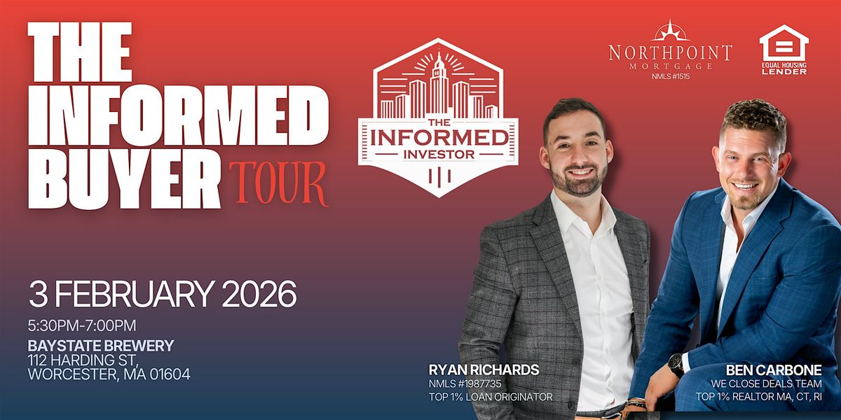 Join us for The Informed Buyer Tour, an educational evening designed to help buyers feel confident, prepared, and informed before entering today’s real estate market. Hosted by Ryan Richards of Northpoint Mortgage and Ben Carbone of the We Close Deals Team, this event will walk attendees through the home-buying process, financing options, and what to expect from start to finish.