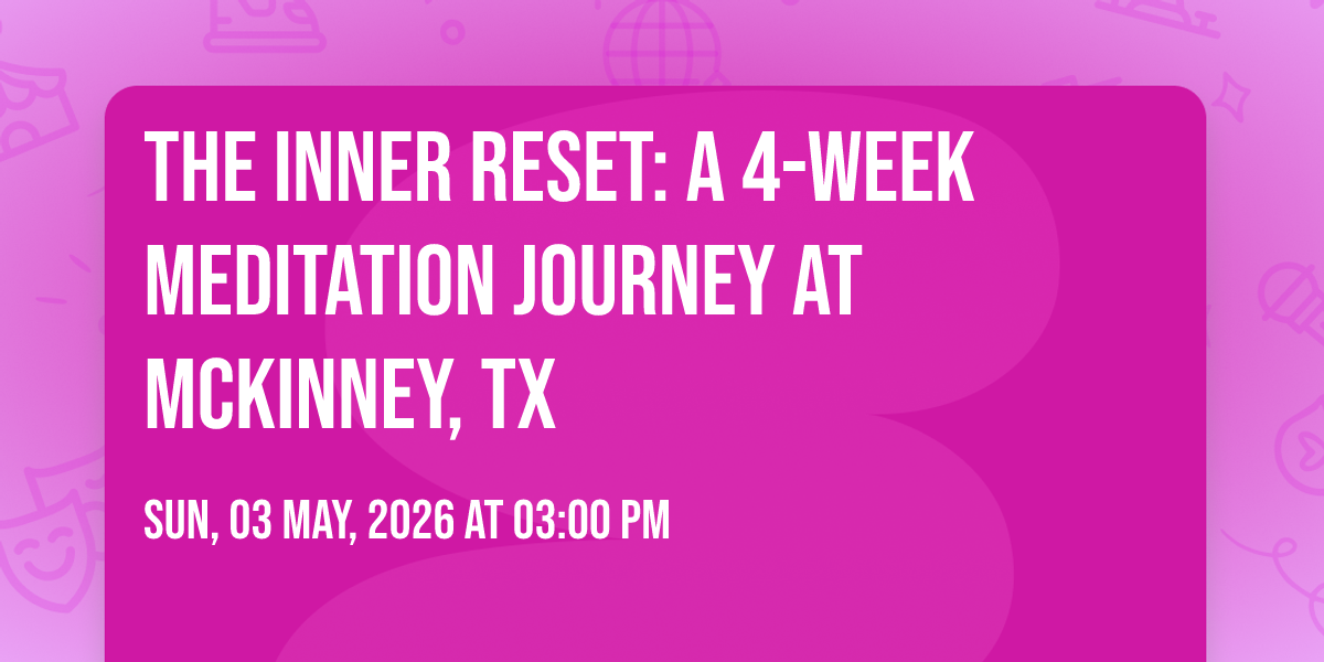 A Transformational In-Person Experience with Meditation Magic Step into a powerful 4-week journey designed to help you reset your mind, realign your energy, and reconnect with your inner self. Through guided meditations, practical wisdom, and reflective practices, this experiential program supports you in creating greater clarity, peace, and purpose in your life. Each session is designed to deepen your awareness, strengthen your meditation practice, and help you cultivate a more positive and empowered mindset.