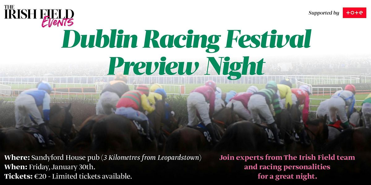 The Irish Field Dublin Racing Festival Preview, supported by Tote, will be held at Sandyford House pub, three kilometres from Leopardstown, on Friday night, January 30th, and will run from 6:30 pm to 8:30 pm. Our panel includes Mark Boylan as MC, joined by David Casey, Amy Lynam, Rory Delargy and Jamie Codd. Tickets are priced at €20 each (excluding Eventbrite booking fee), which includes a free €5 Tote bet and a free copy of The Irish Field, hot off the presses, which will include a €10 matched bet offer. Please note that only 100 tickets are available for this exclusive event. Panel will include experts from The Irish Field team and racing personalities.