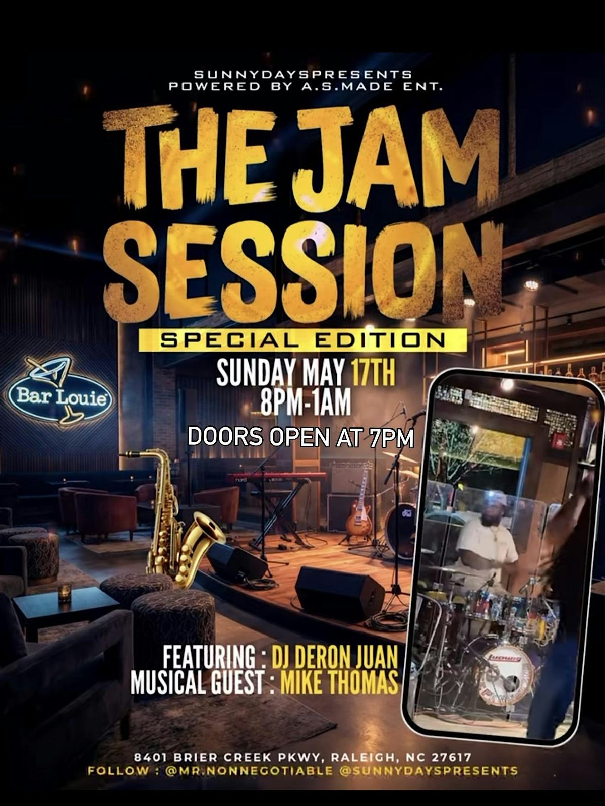 #SunnyDaysPresents #JamSession #RaleighNightlife #LiveMusicExperience #TheJamSession #RaleighEvents