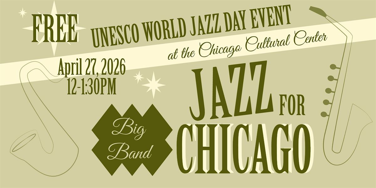 The Chicago Federation of Musicians (Local 10-208 of the American Federation of Musicians) is proud to present a free lunchtime performance by The Jazz for Chicago Big Band on Monday, April 27, 2026, from 12:00 PM to 1:30 PM in the historic GAR Hall at the Chicago Cultural Center. The performance serves as a kickoff to a weeklong celebration of UNESCO’s World Jazz Day. Observed each year on April 30th, the City of Chicago is proud to serve as this year’s global host city, highlighting Chicago’s jazz musicians as a vital part of the city’s rich artistic life.