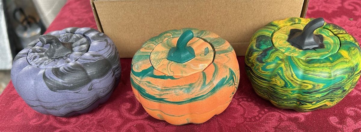 In this workshop, you will learn a variety of techniques: terrazzo, marbling and block colour to create 3 items - a lidded pumpkin-shaped pot (suitable for jewellery, small plant or tea light), a mini terrazzo pot and a coaster! Suitable for adults and accompanied children - each participant must purchase a ticket to take part.