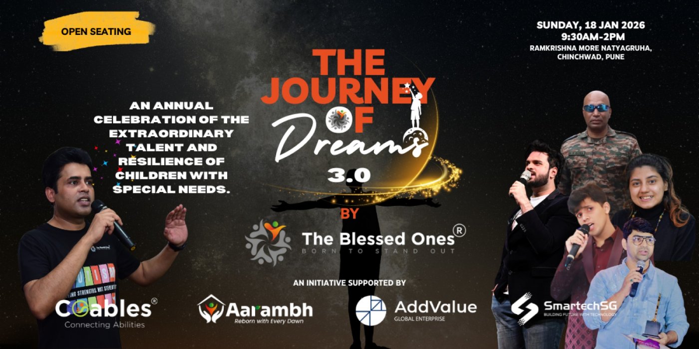 The Blessed Ones is proud to present its annual flagship event, The Journey Of Dreams 3.0, a powerful celebration of talent, resilience, and inclusion. Join us on January 18th, 2026, in Pune, Maharashtra, as we create a stage where exceptional abilities shine and dreams take flight.