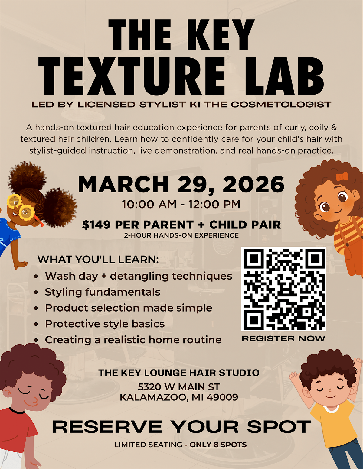 The Key Texture Lab is an intimate, hands-on education experience designed to help parents confidently care for curly, coily, and textured hair.