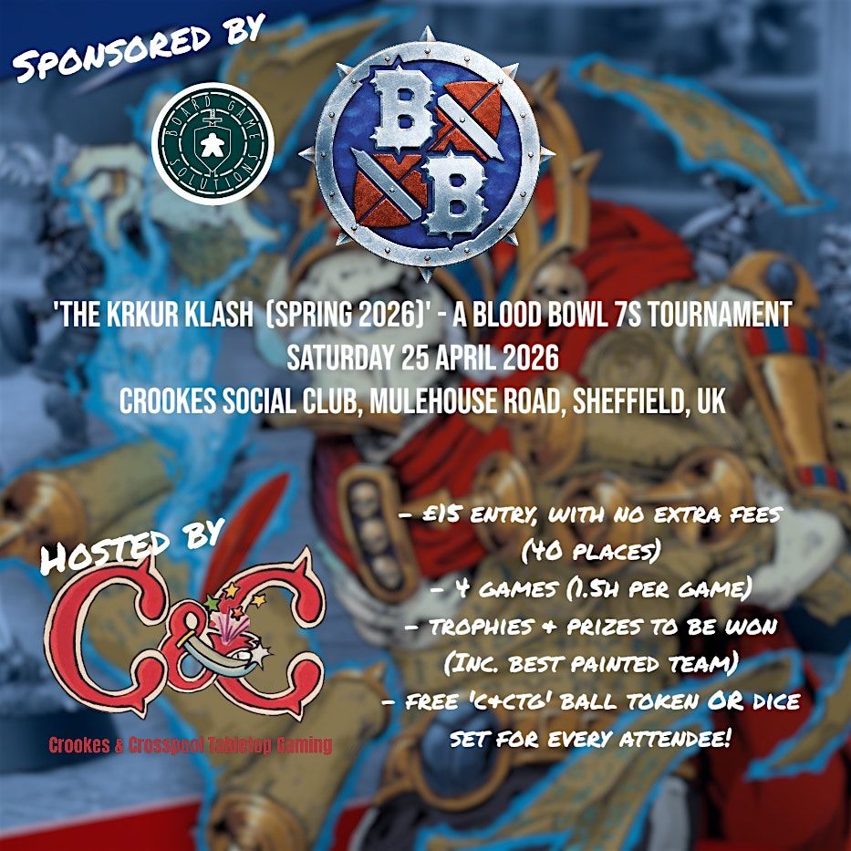 An all-day Blood Bowl 7s tournament at Crookes Social club, Sheffield, hosted by Crookes & Crosspool Tabletop Gaming.
