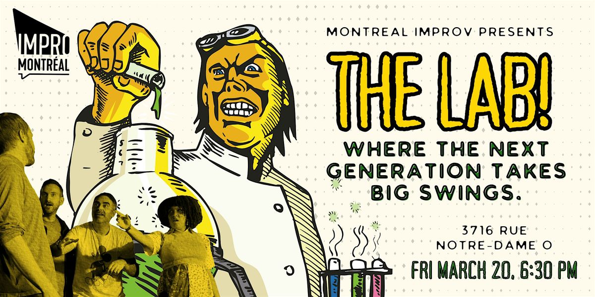 Step into The Lab, where fresh talent from the Montreal Improv school takes the stage for an hour of improvised comedy! This show features emerging performers experimenting with their craft, bringing new and exciting energy to each scene.