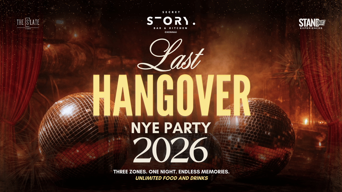 The Last Hangover is Secret Story’s flagship New Year’s Eve party, designed with a bold Sequin Glamour theme and powered by high-energy commercial music all night. The vibe is shiny, glittery, and festive with gold–silver tones, confetti moments, and a premium countdown experience. Targeted towards a young, party-loving crowd, the event delivers a wild, high-energy end to the year with a stylish aesthetic, sequin-themed visuals, and nonstop commercial bangers to keep the night lit till 2026.