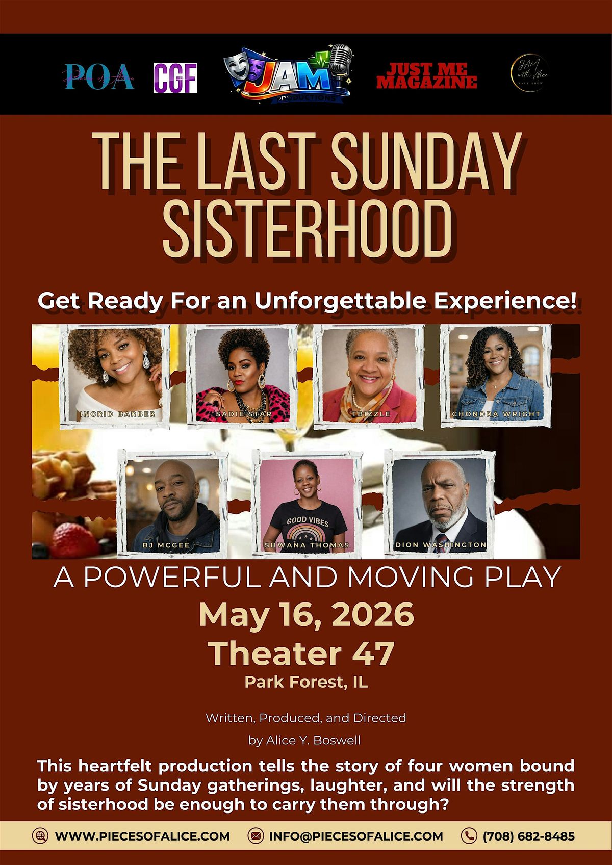 The Last Sunday Sisterhood is a powerful new stage play that takes audiences on an emotional and entertaining ride through the bonds of friendship, faith, and resilience.