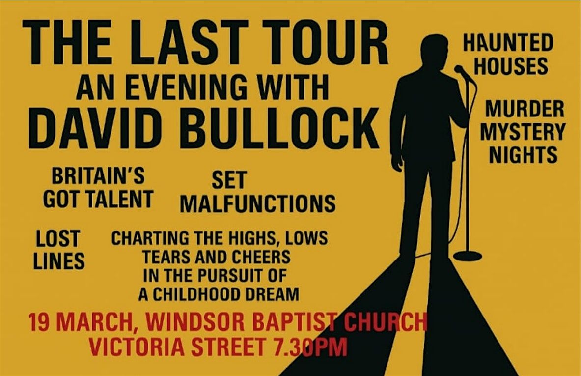 Get ready for an unforgettable night in person! David Bullock is hitting the road bringing his signature engaging storytelling style making an for entertaining and fun evening.. Don’t miss this chance to catch The Last Tour live and find out what adventures David has been up to. David will be charting the highs and lows and many unforgettable and hilarious moments as he pursued a childhood dream. The evening will be full of warmth and humour of the life and times of Windsor's beloved PCSO. The ticket sale proceeds will go towards the amazing work of the Windsor Street Angels and the Tree House Cafe!