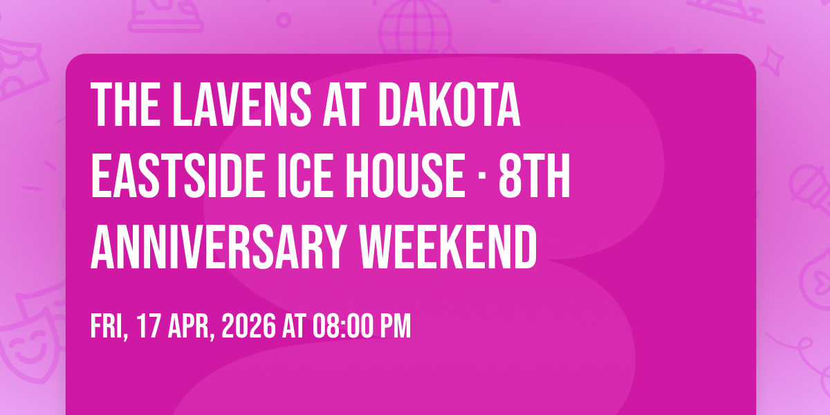 The Lavens at Dakota Eastside Ice House · 8th Anniversary WeekendThe Lavens play Dakota Eastside Ice House during the venue’s 8th anniversary weekend celebration on Friday, April 17, 2026 at 8 PM. No cover. Just show up.