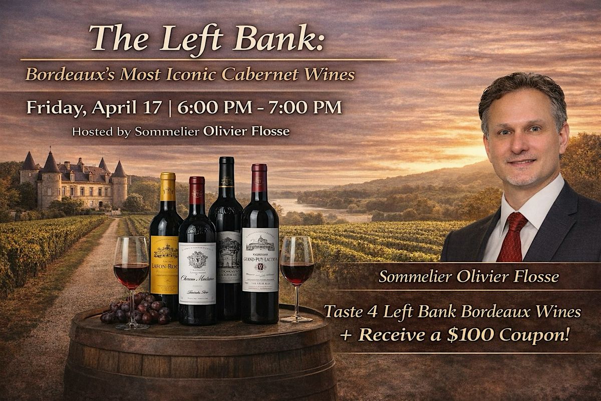 Westchester Wine Warehouse cordially invites you to an exclusive evening of wine discovery and appreciation. Join us on Friday, April 17th, from 6:00 PM to 7:00 PM in our elegant Private Tasting Room for Left Bank Legends: A Bordeaux Cabernet Masterclass.