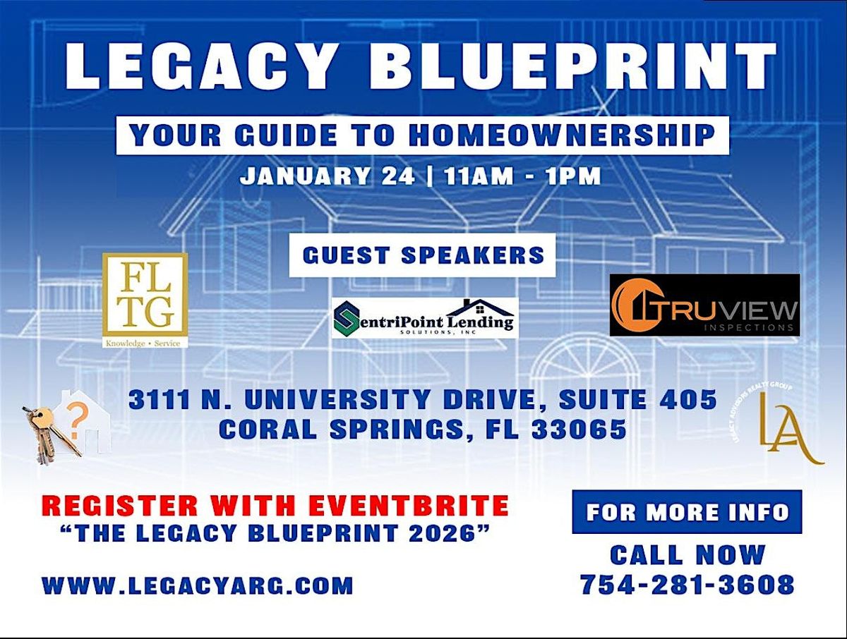 Come Discover "Your Guide to Homeownership" at The Legacy Blueprint 2026 by building your Legacy through Real Estate. Don't miss out the opportuinity to learning the step by step process to achieving that GOAL!