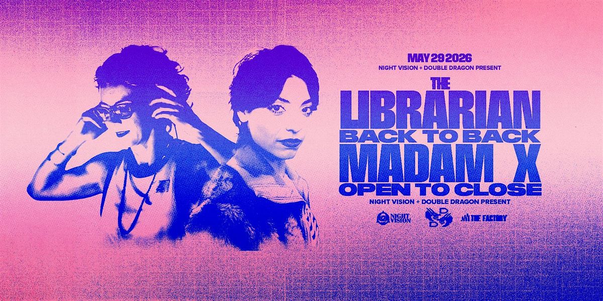 Get ready for a nonstop b2b session with The Librarian and Madam X spinning from open to close!