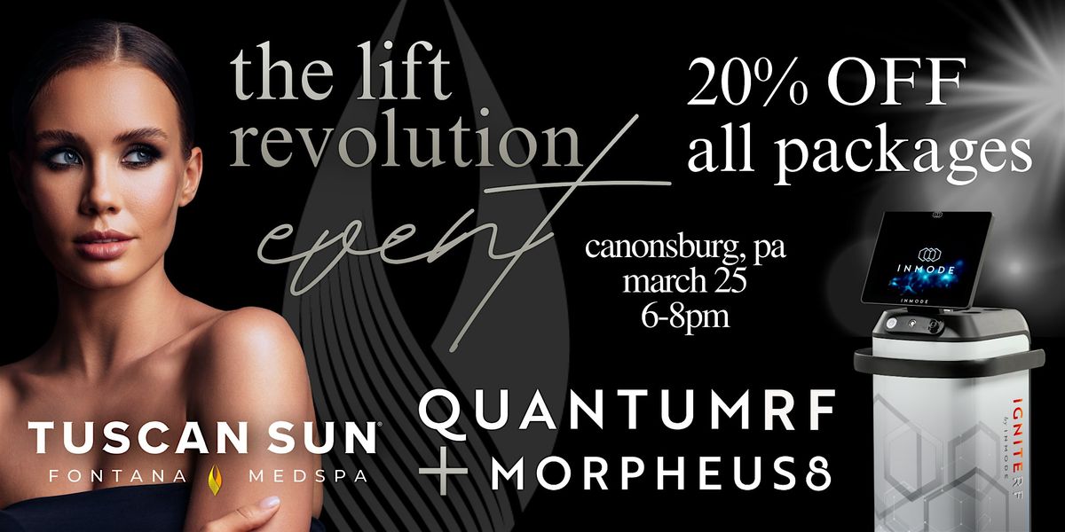 Lifting and sculpting at Tuscan Sun Fontana Medspa just got a BIG upgrade! We are pumped to announce the arrival of Quantum RF & Morpheus 8 technology, and there is no better way to celebrate than with an event! Don't miss exclusive event pricing , giveaways, expert insights, 1-on-1 consultations, and chances to win fantastic prizes!