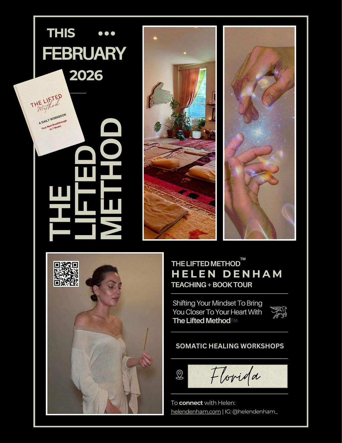 Join Helen, mindfulness guide and author of The Lifted Method, as she stops in Florida on her national teaching tour (NYC → California) for a powerful 90-minute somatic healing experience.