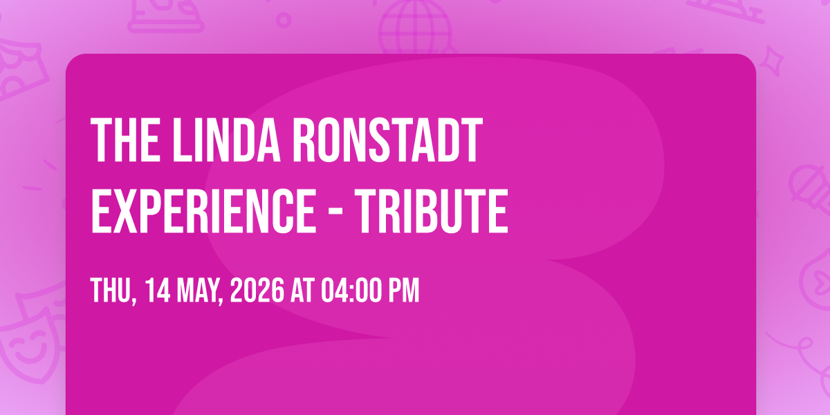 ✨ Embark on an extraordinary journey at The Linda Ronstadt Experience - Tribute, where every moment promises to be unforgettable! 🌟 Imagine of transforming Laguna Playhouse in the heart of Laguna Beach, CA into a realm of endless possibilities. 📅 Join us on May 15th, 2026 at 04:00 PM for an experience that will challenge your imagination and exceed your expectations. 🎯 This carefully curated event combines the finest elements of entertainment, innovation, and community spirit. Whether you're an adventure seeker, culture enthusiast, or someone looking for unique experiences, this event offers something special for everyone. 🎊 Don't miss this chance to be part of something extraordinary!http://maps.seatics.com/LagunaPlayhouse_Endstage_2024-09-24_2024-09-24_0535_09242024_064059_SVGC_tn.png